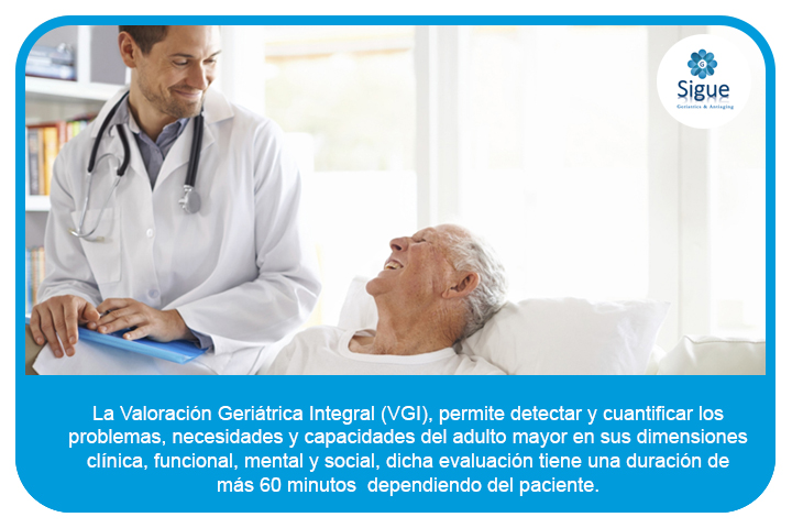 Es un proceso de evaluación diagnostica, estructurada que permite detectar y cuantificar los problemas, necesidades y capacidades del adulto mayor en sus dimensiones clínica, funcional, mental y social para elaborar en base a ellos una estrategia de abordaje interdisciplinar de intervención, tratamiento y seguimiento a largo plazo con el fin de logras el mayor grado de independencia y calidad de vida.